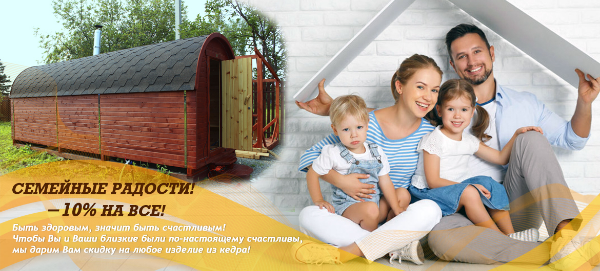 Чтобы здоровье всегда было богатырским, а ваши дети и близкие радовали ежедневно счастливыми улыбками, дарим Вам скидку 10% на любое изделие из кедра*!
