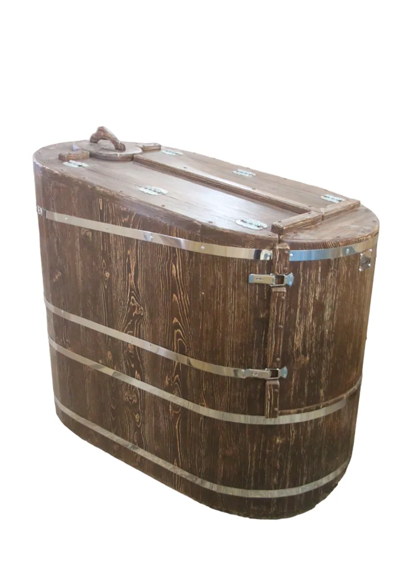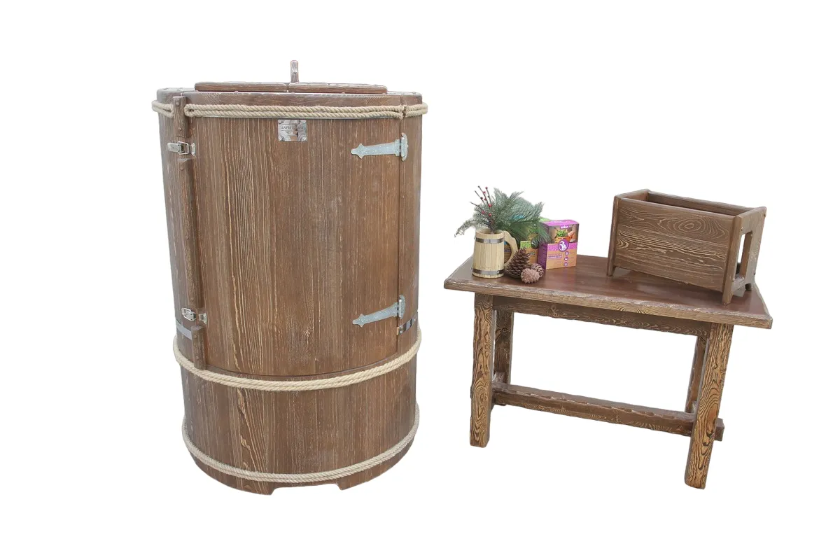 Фитобочку можно также декорировать канатной веревкой в места обручей из нержавеющей стали (оплачивается дополнительно).