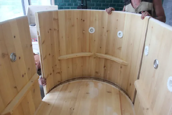 Купели из кедра могут быть разных форм и размеров: круглые, овальные, угловые, прямоугольные и квадратные. Каждая форма и размер предполагает свою схему сборки. Изделие доставляется в собранном виде, стянутая обручами. Перед началом сборки необходимо разобрать купель, занести по частям в помещение, где будет в дальнейшем она установлена, а далее осуществить сборку по месту.